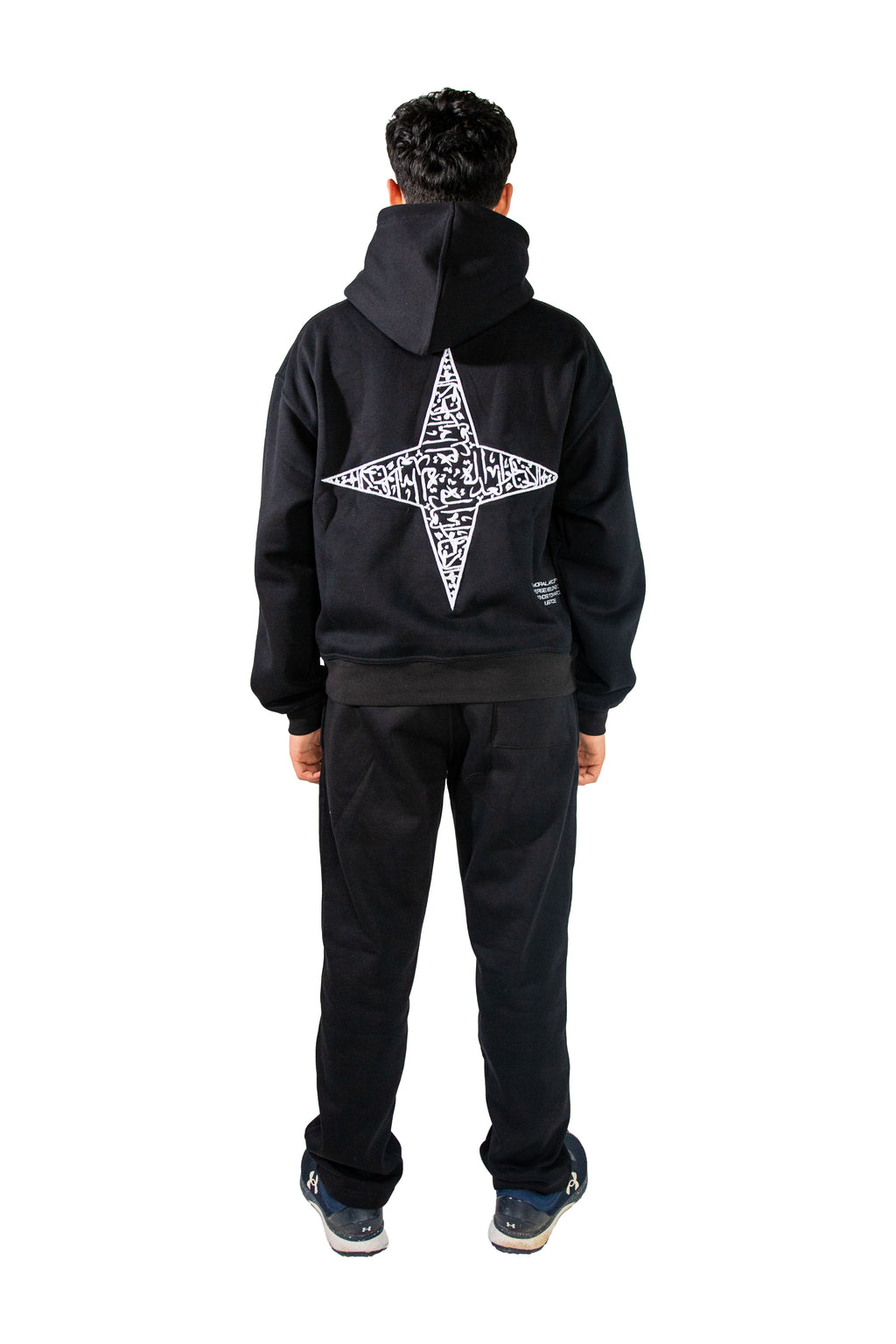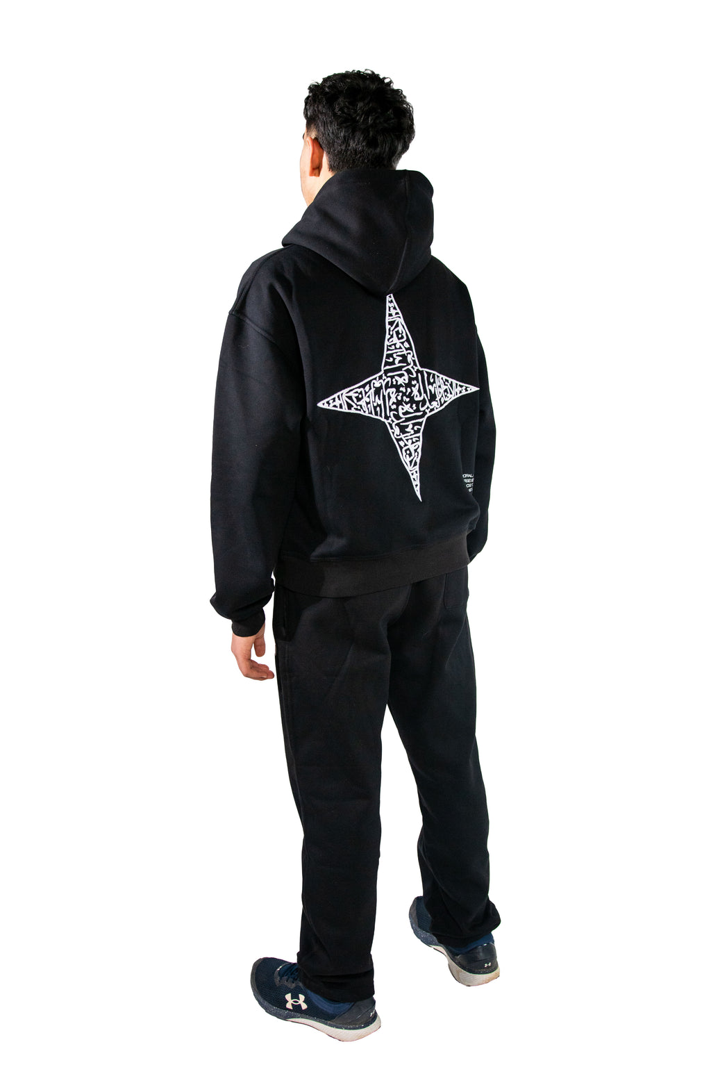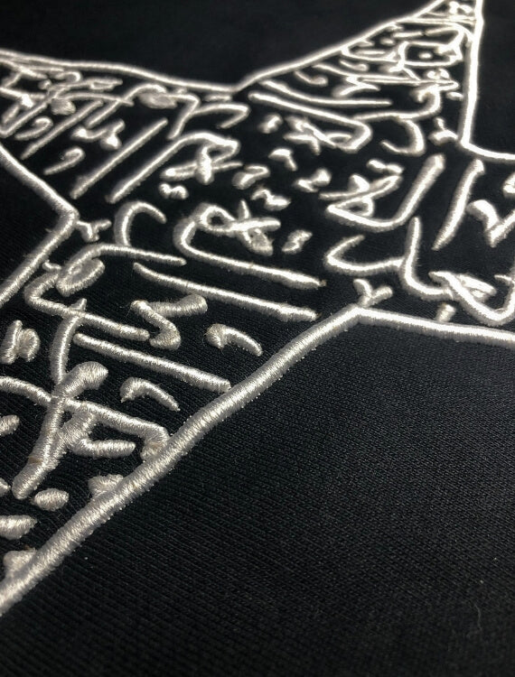 The black Arabic Star Hoodie is the first piece created in Project 697, and is crafted from a luxury heavyweight organic Egyptian cotton. We use 100% Cotton to ensure its the highest quality. In addition we make sure our products are organic to reduce waste and pollution to our enviroment.
